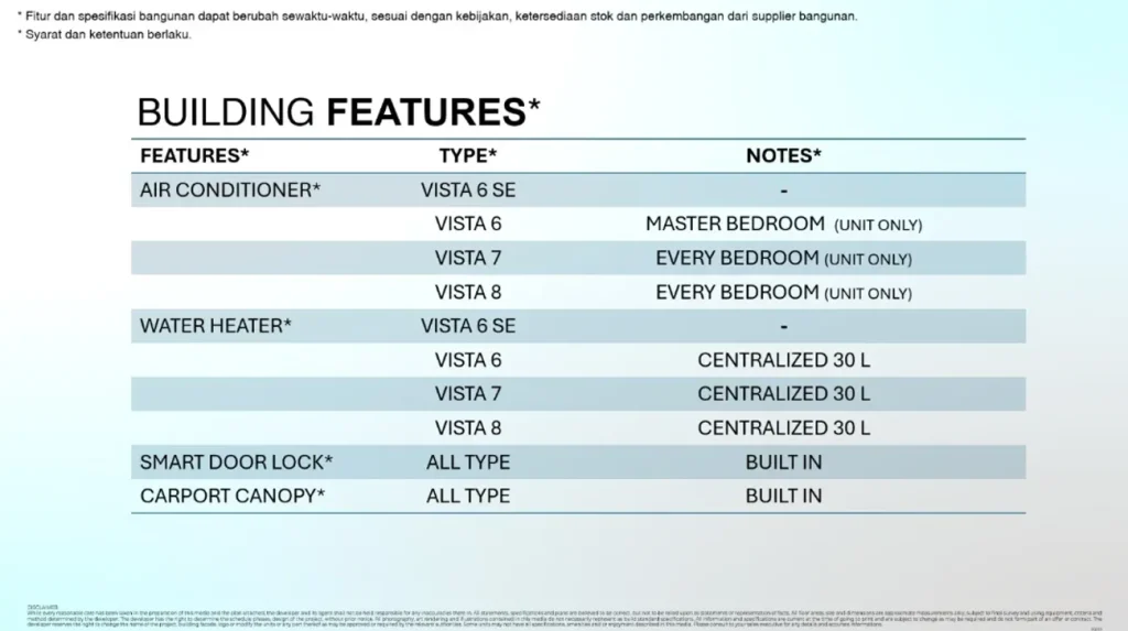 Miliki kehidupan premium di Vista, dalam lingkungan yang nyaman dan asri di tiap sudutnya. Bintaro Jaya menawarkan kualitas hidup terbaik yang terinspirasi dari Vista di Jakarta Selatan, menyiratkan persona kemewahan dan kenyamanan.